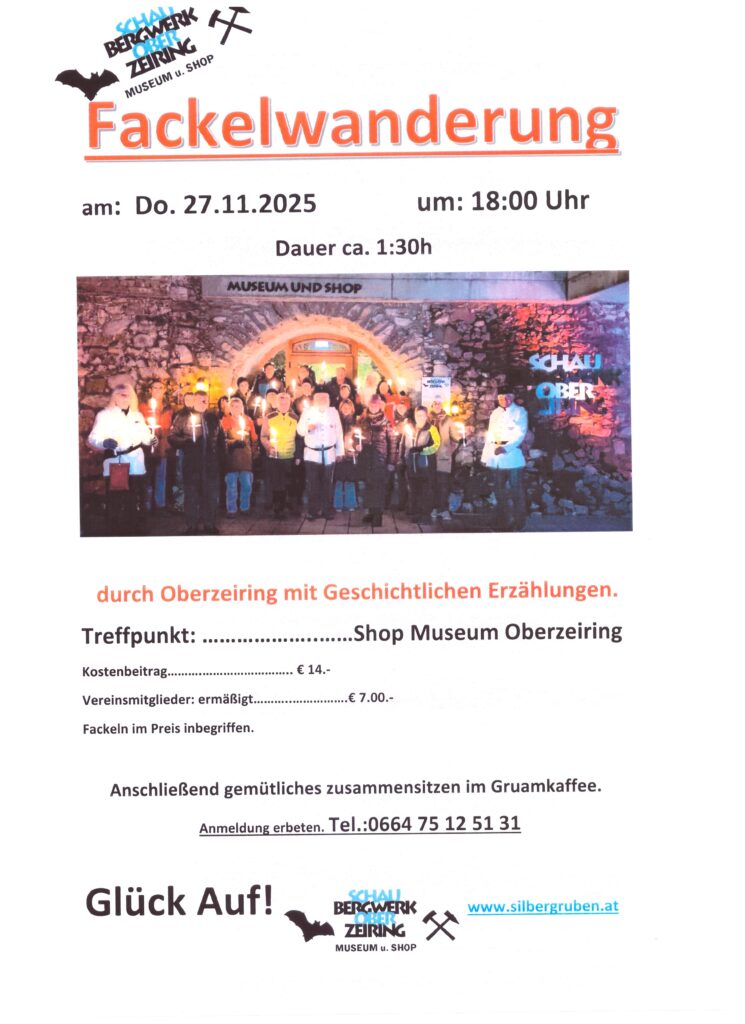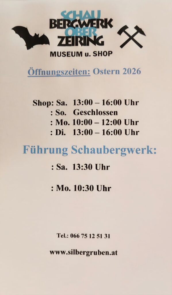 Um den Bergbau in Oberzeiring ranken sich viele Geschichten. Der größte der Ostalpen ist er gewesen und seine Knappen waren reiche Männer. Durch den intensiven und langen Erzabbau gibt es ein weitläufiges Stollennetz von circa 80 km. Ein kleiner Teil davon ist seit 1958 als Schaustollen unseren zahlreichen Besucherinnen und Besuchern zugänglich.